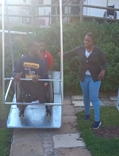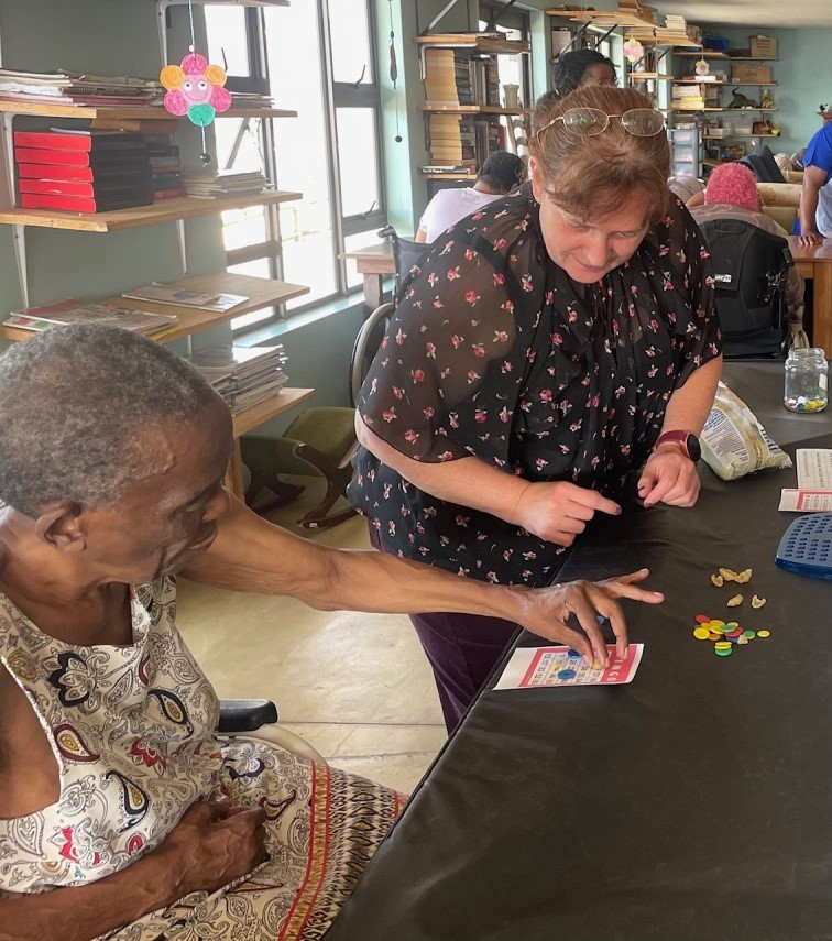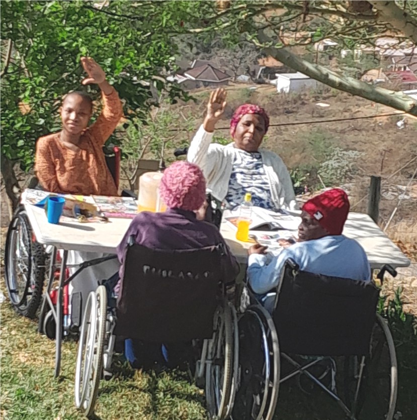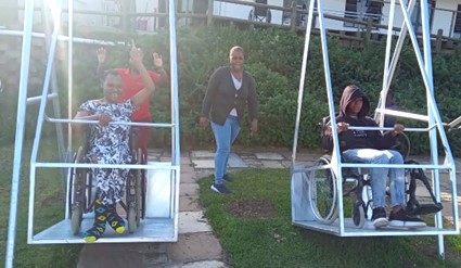 The new wheelchair swing is a hit with the residents! Young and old love to swing and enjoy the beautiful weather and movement. Pictured far right: Spending some time in the sun doing art.