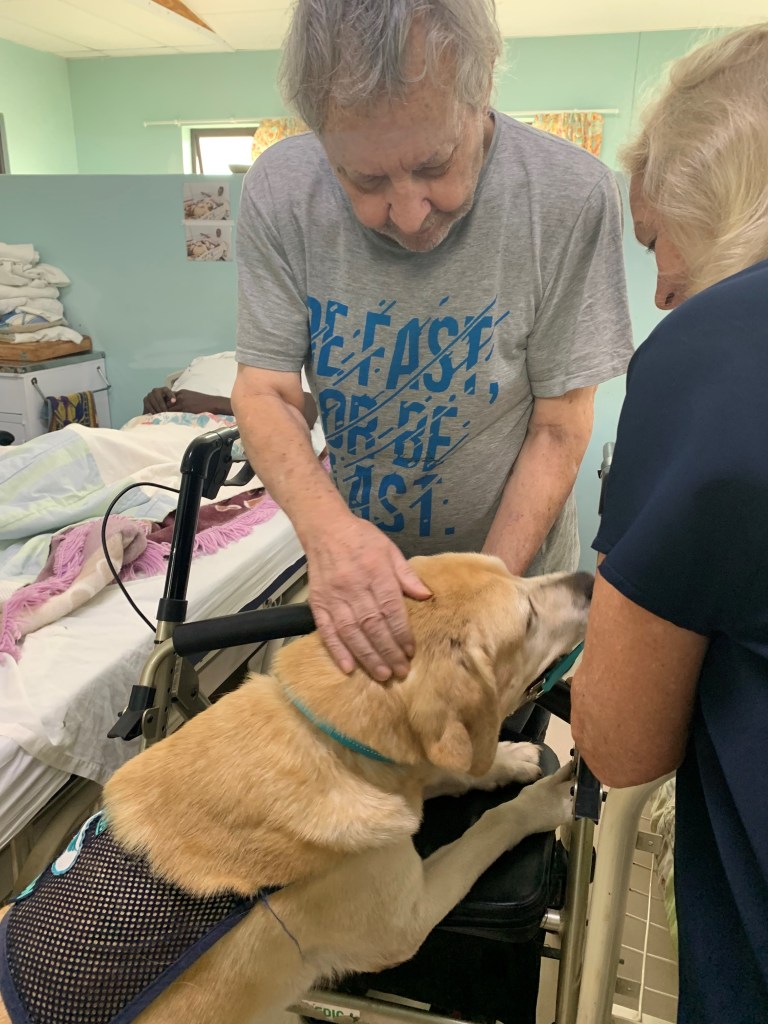 Finally we were also visited by the wonderful team form Angel Paws. Here are a few pics of residents enjoying the company of the canine therapists.